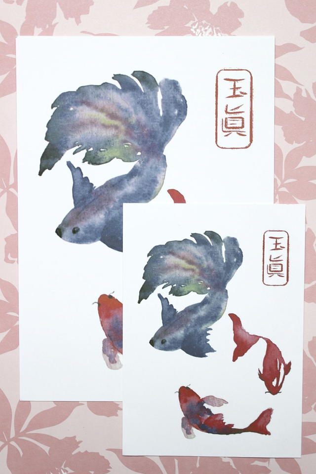 Reproduction de mon illustration originale réalisée à l'aquarelle « Poissons exotiques »