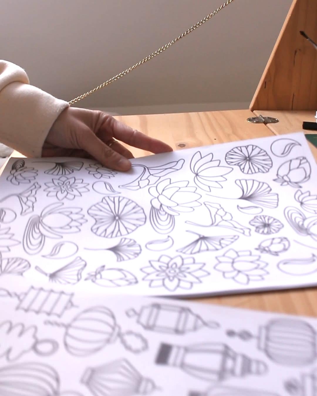 Un aperçu en image du travail accompli derrière Atelier Chân. Des heures de dessin, de mise en forme, de retouches... Afin de créer des illustrations et des coloriages qui invitent au voyage.